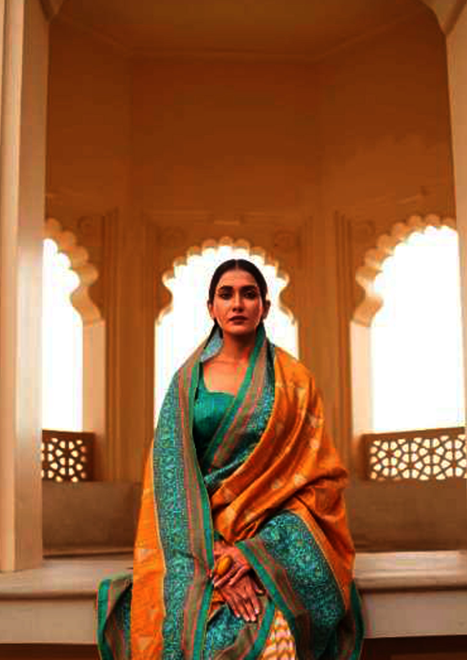 Mustard Pure Silk Saree With Bottle Green Border And Blouse | Perfect for this festive season