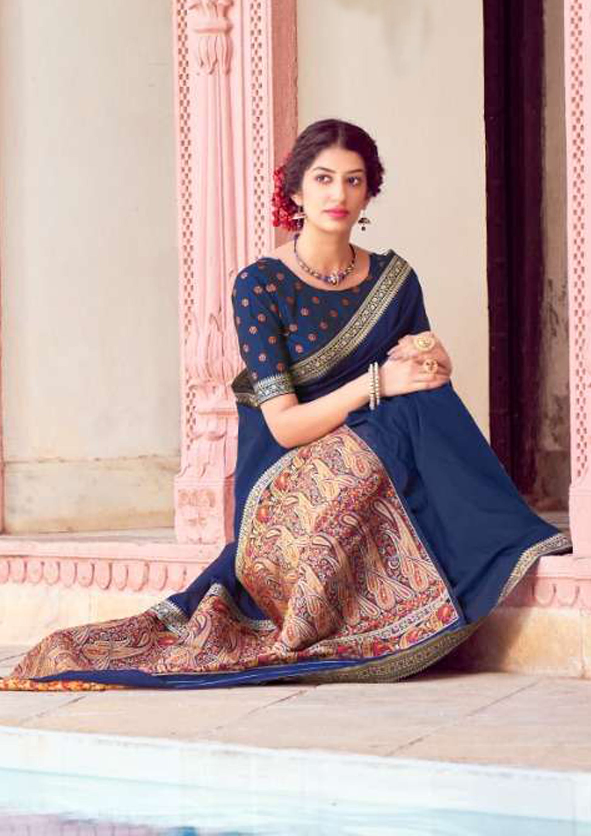 Navy Blue Pure Silk Saree With Heavy Aanchal Border And Matching Blouse | Perfect for this festive season